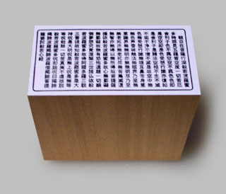 の思想など般若経の精要を簡潔に説いたもの。これを写経するというのはよく知られている活動ですが、それをゴム印にしてみました。一押しで写経一回。忙しい現代にマッチした逸品。